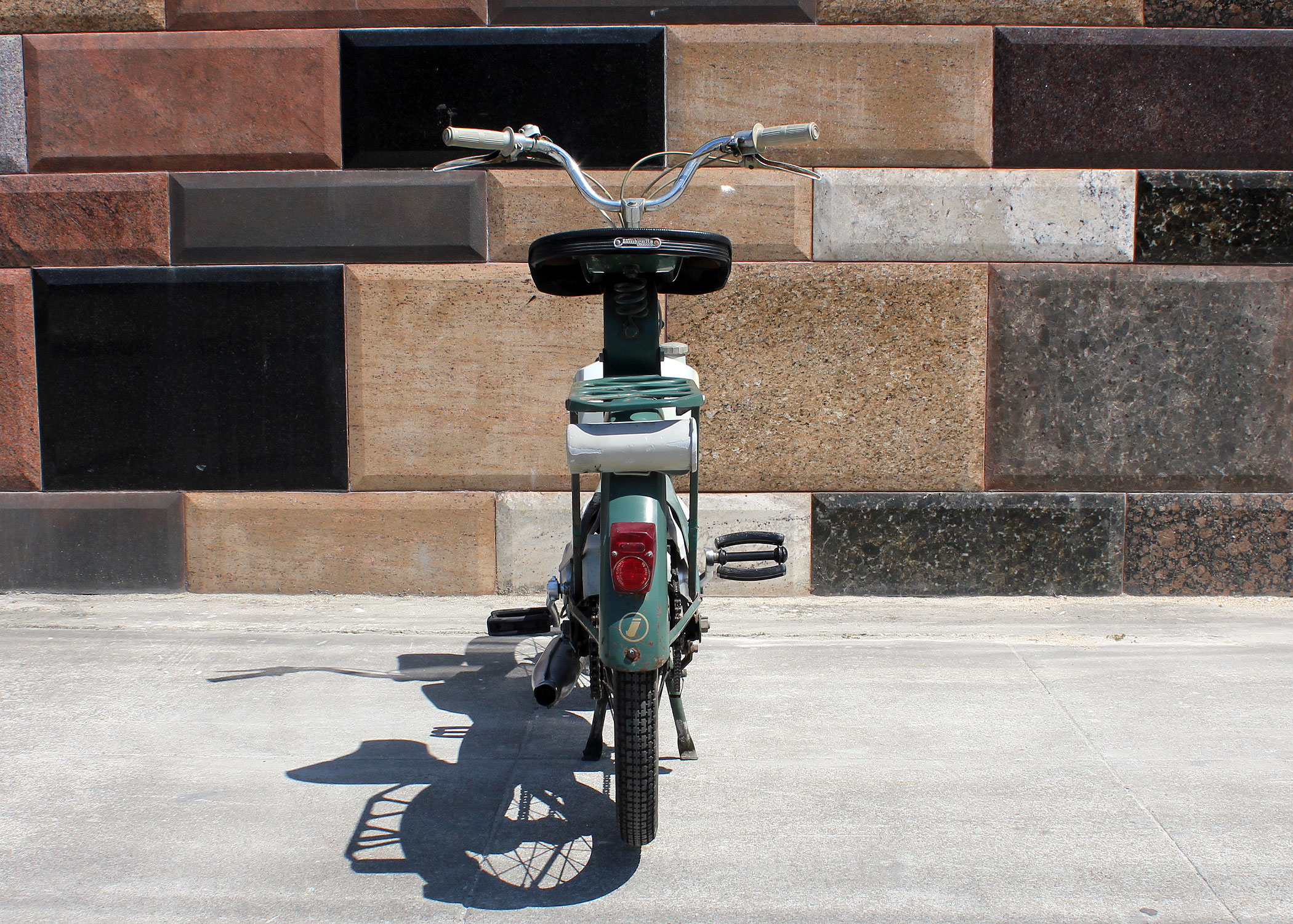We are really excited about this moped. As you know, Innocenti made one of the top classic scooters, the Lambretta. However, that was not the only vehicle that they made. They also made cars, and as you can see here, mopeds. The Innocenti moped was called the “Lambrettino,” or little Lambretta. The market for mopeds in Italy in the 60’s and 70’s was huge. Virtually every motorcycle manufacturer in Europe made a moped of some kind just to get a slice of that market. Innocenti was no different. While their production numbers were not as large as some of the big names in mopeds, the Innocentis certainly had style. These are rare mopeds for sure, and this is the first one that we have found from this era… and what a moped it is! This one is all original, and in fantastic condition. All the parts are intact, and the original paint looks really good. We have not tried to buff it in order to keep it looking as we found it, but we are sure that if you chose, it would not be hard to make this paint shine. All the plastic pieces are still present and intact. The seat is original and in amazing shape, still wearing its Innocenti tag. This is a great moped. It is one that would look really good as part of a moped, or Lambretta collection. Did I mention we love this moped?!