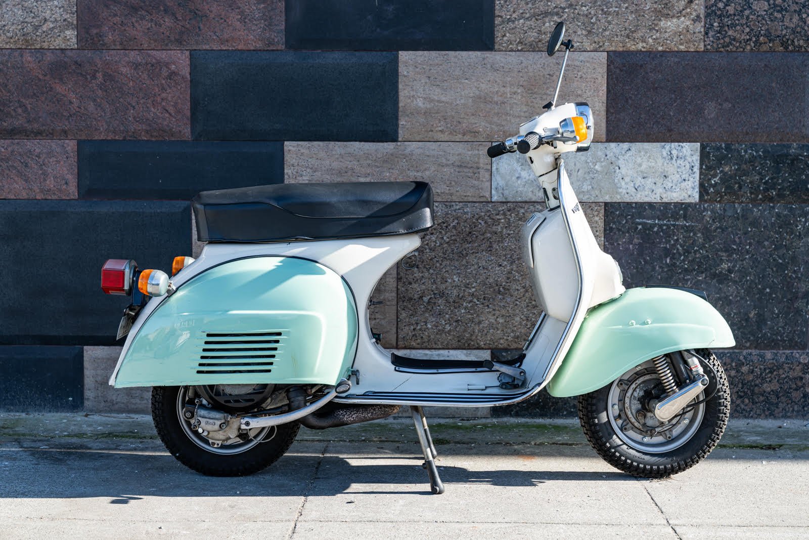 This cool VESPA PK has all the style you could ask for, but under the slick exterior it is all business .. just tuned and in perfect running order. This scooter is in largely original condition, showing the marks of a trusted daily driver.