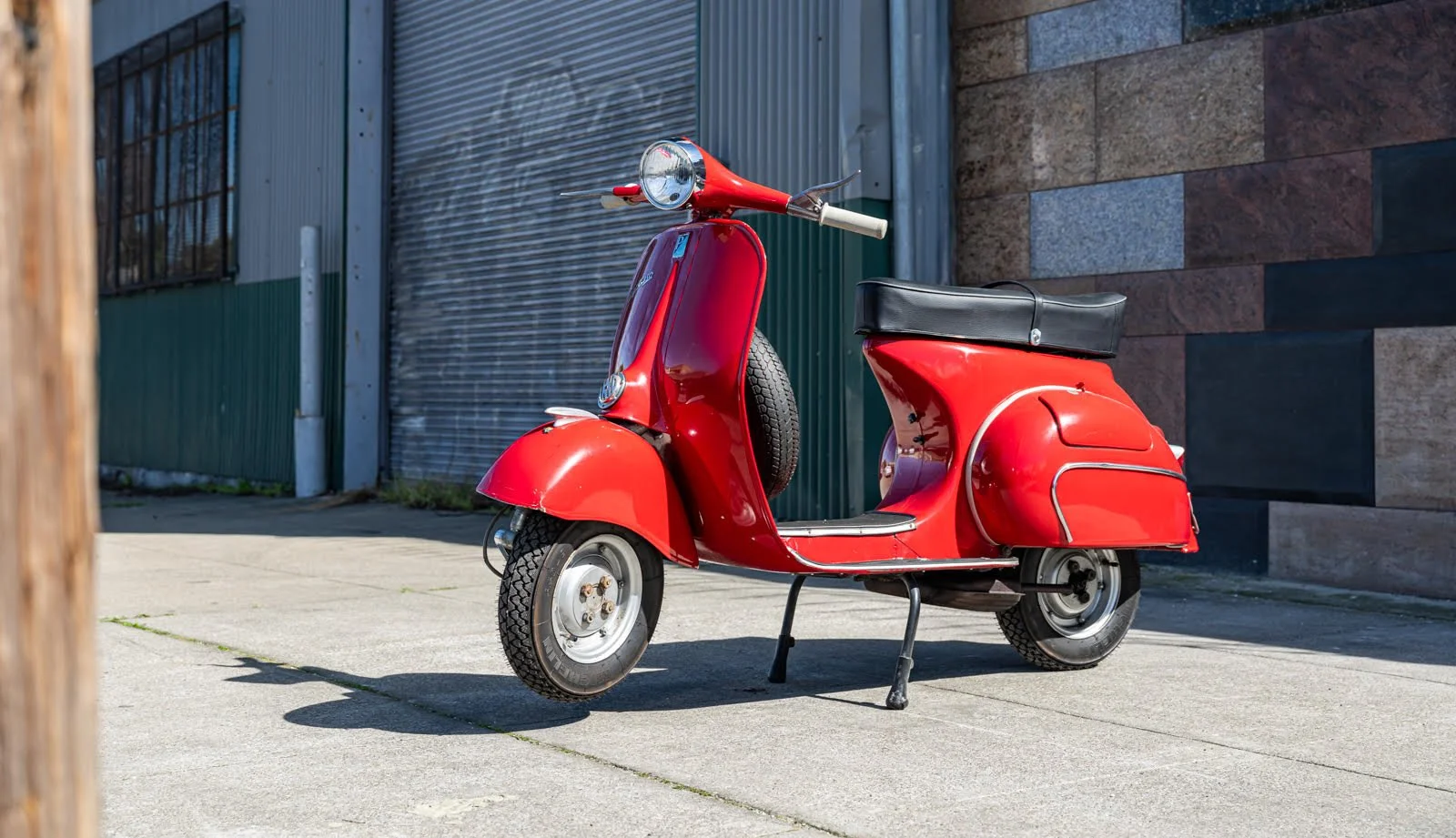 A true classic Vespa model in very good condition, ready to ride and enjoy as the perfect daily driver scoot. Mechanicals are in great shape and this happy Vespa starts, runs and rides well. A new Vespa crate motor was installed several years ago. Recent maintenance was performed and this bike is up to date on service. This Vespa VBB features a four speed transmission. It is fitted with electronic ignition for sure starts and new tires for a smooth ride. This iconic, Italian Racing Red Vespa is a sharp looker with sensual curves and tidy chrome accents.